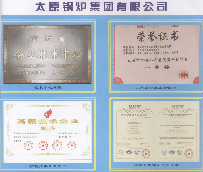 太原鍋爐集團(tuán)有限公司是國(guó)家A級(jí)鍋爐制造單位,公司占地面積68萬(wàn)㎡,資產(chǎn)總值6.7億元,現(xiàn)有職工2000人,公司擁有一批從事熱能、電力、環(huán)保等專業(yè)的高級(jí)技術(shù)人才,其中教授級(jí)高工5名,高級(jí)工程師50名,工程師185名,其它技術(shù)人員735名。公司是華北地區(qū)最大的鍋爐制造企業(yè)。公司擁有A級(jí)鍋爐和三類壓力容器設(shè)計(jì)制造許可證,同時(shí)是中國(guó)循環(huán)流化床鍋爐、層燃鍋爐、余熱鍋爐、垃圾焚燒鍋爐、燃?xì)忮仩t、壓力容器、氣力輸送、粉煤灰分選和水處理設(shè)備的重要研發(fā)和制造基地。